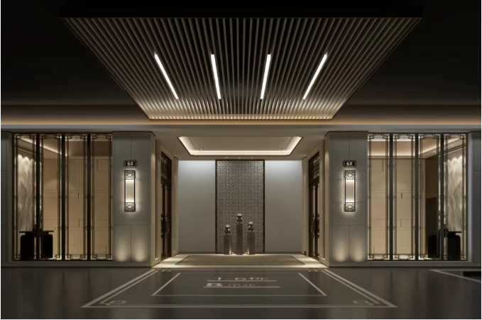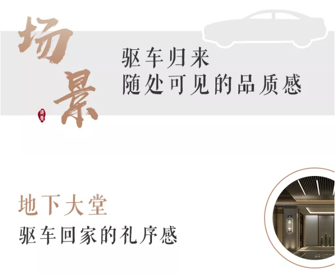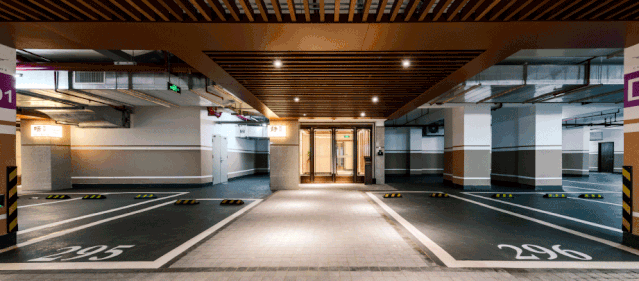 樓棟入口的吊頂增加了燈光設(shè)計,讓你停車入庫,便可快速找到入戶大堂,從容回家。