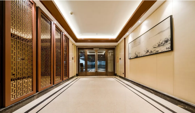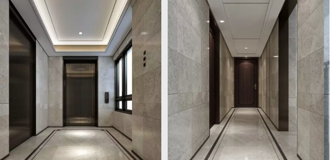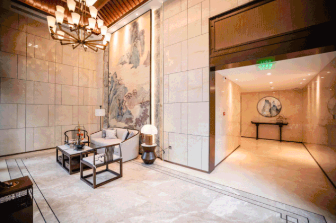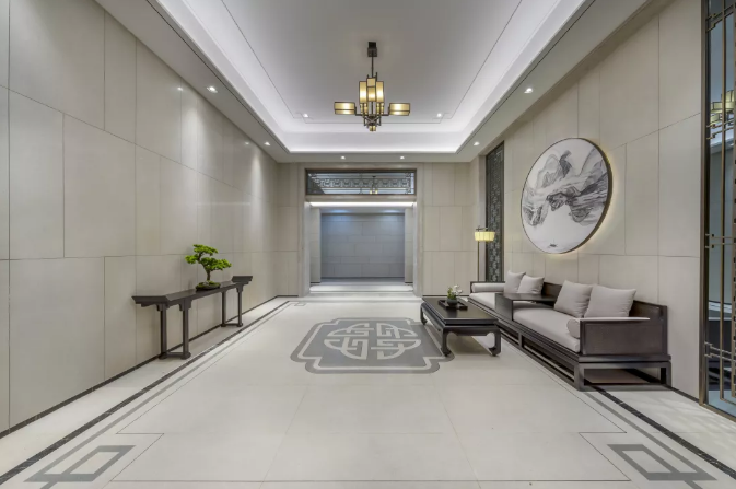 每一個細(xì)節(jié)都充滿考究,連電梯的轎廂門廳地面設(shè)計,也采用了中式線條地拼。