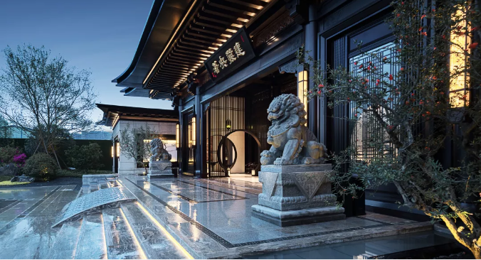 頂端的斗拱結(jié)構(gòu),形成敞開懷抱、迎賓納福之勢,加以嚴(yán)謹(jǐn)?shù)膶ΨQ結(jié)構(gòu),營造歸家儀式感。